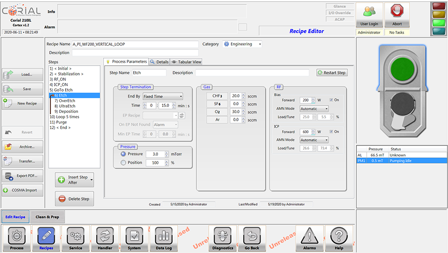 - Support ICP, RIE, ALE and DRIE process recipes in the same reactor